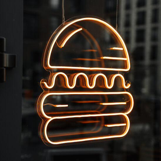 Главным преимуществом такой неоновой вывески является её винтажность. Стеклянный неон хорошо сочетается со многими интерьерами.