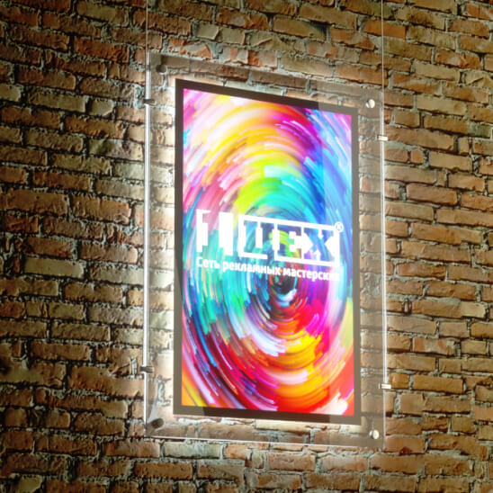 Прозрачные световые панели с ажурным свечением по периметру. Часто используются в компаниях премиального сегмента. Небольшая толщина панели делает незаметным сам носитель, полностью акцентируя внимание на изображении. Создается иллюзия, что само изображение на панели «кристалл» само является источником свечения. Конструкция прочная и идеально рассеивающия свет по всей плоскости.